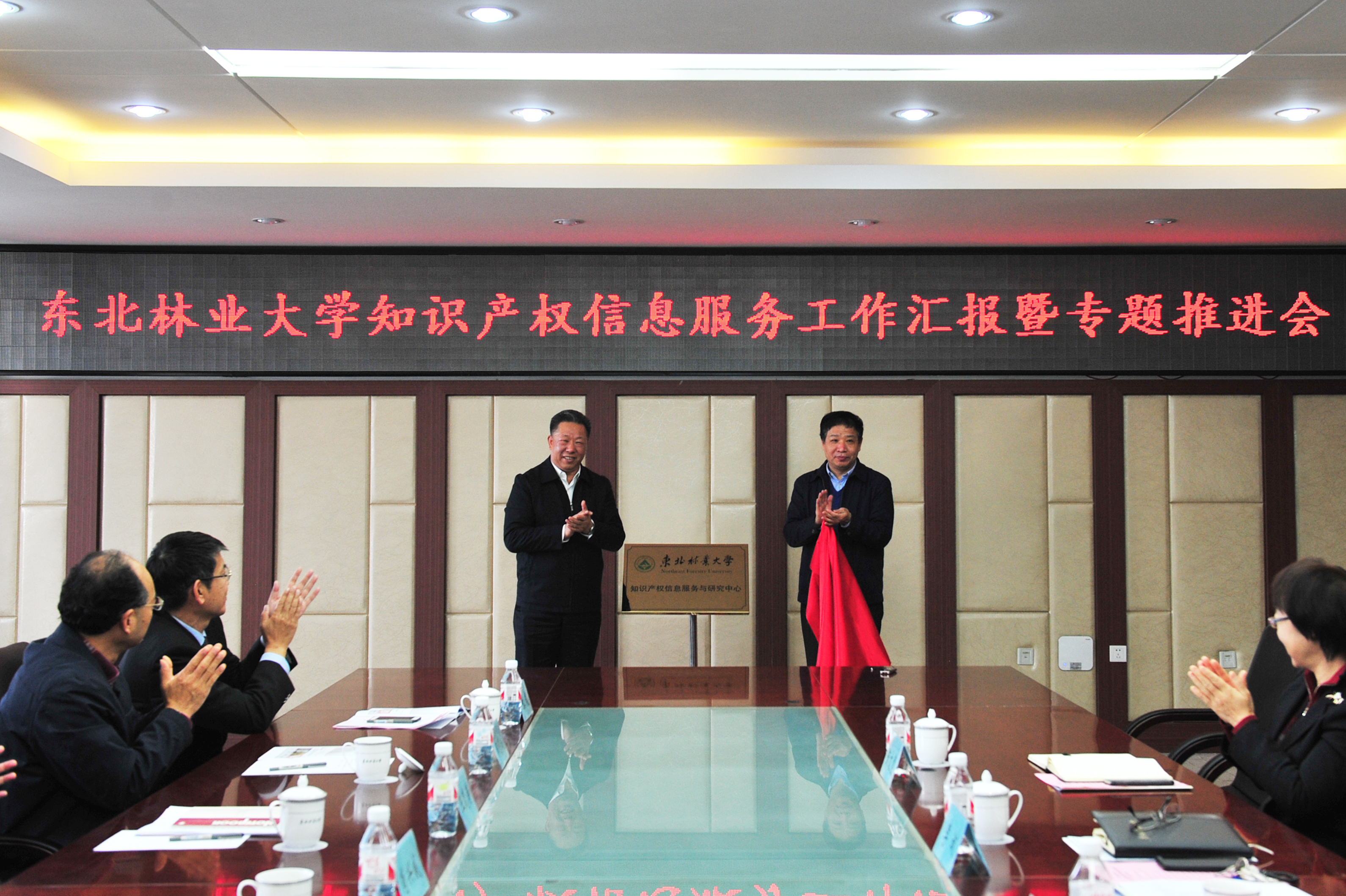 会议结束后,肖兴威书记和李斌校长共同为“东北林业大学知识产权信息服务与研究中心”揭牌。